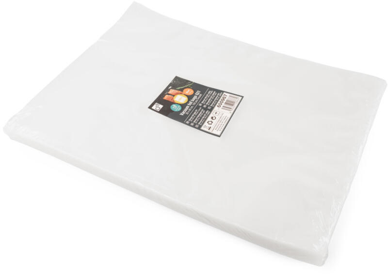 Minőségi anyag, erős kötések A G21 vákuumtasakok nagy előnye, hogy 90 m vastagságú , egészségre ártalmatlan anyagból készülnek, valamint erős és tartós hegesztésekkel rendelkeznek, amelyek biztosítják a vákuum megtartását és a csomagolt élelmiszerek kiváló védelmét. A sima felület gyorsabbá és kényelmesebbé teszi a vákuumozást. A vákuumozott élelmiszereket bátran elkészítheti sous-vide főzéssel, és hosszabb ideig eltarthatók hűtőben vagy fagyasztóban történő tároláskor. Könnyű használat, egyszerű kezelés A G21 vákuumtasakok előnye a könnyű használat és az egyszerű kezelés. Kompatibilisek minden típusú kamrás vákuumcsomagoló géppel, beleértve a G21 Virtuous kamrás vákuumcsomagolót is. Helyezze az alapanyagot a tasakba, majd a levegő kiszívása után a vákuumcsomagolóval biztonságosan zárja le a nyílást. Műszaki adatok